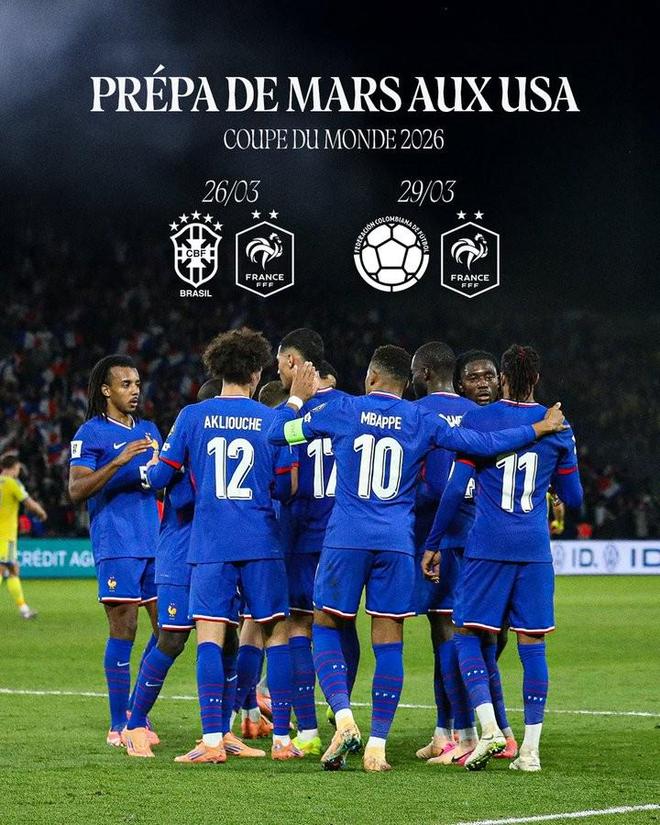 北京时间12月6日,法国国家队正式公布了明年3月两场热身赛的赛程。法国队官方表示:“高卢雄鸡”将于3月份前往美国进行两场重要的热身赛!按照赛程安排,法国队将在巴西和哥伦比亚进行两次重要的测试,为2026年世界杯的备战拉开序幕。这两场热身赛定于美国举行。具体赛程如下:2026年3月26日巴西对阵法国。 2026年3月29日,世界杯小组抽签结束,哥伦比亚对阵法国。法国队被分在I组,同组的对手是挪威、塞内加尔和洲际附加赛2的胜者。