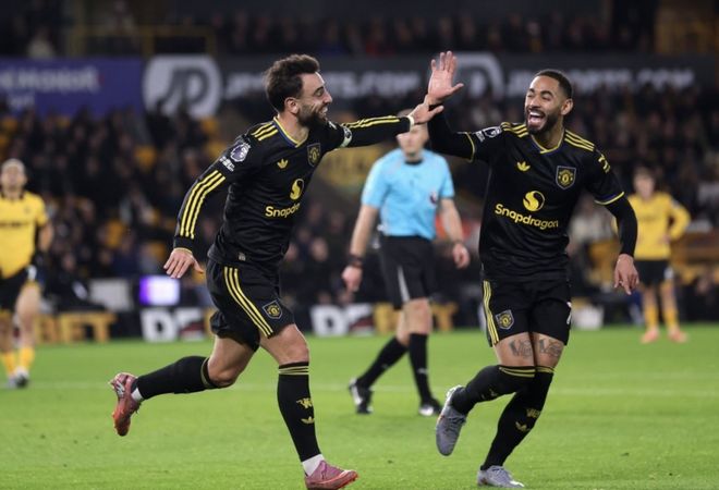 北京时间12月9日,2025-26赛季英超联赛第15轮,曼联客场4-1击败副队长狼队,积分与切尔西并列,积分榜上升至第六位。 B费传射+点球破门,贝勒加德扳平,姆贝莫、芒特破门。比赛亮点 1、布鲁诺·费尔南德斯英超生涯打进66球,在葡萄牙球员中仅次于C罗。他连续5场英超比赛贡献助攻,创造了历史纪录。 2、姆贝莫英超生涯7场对阵狼队的比赛中打进4球并贡献2次助攻。在他的英超生涯中,他只在对阵布莱顿、托特纳姆热刺和南安普顿的比赛中打入更多进球(均为5球)。第8分钟,曼联后场长传,达洛特右脚射门被扑出。第25分钟,迪亚洛前场断球,被库尼亚助攻。 B飞摔倒后落地后,他转身射门入网,1-0!曼联取得领先。第29分钟,姆贝莫禁区内左脚射门被扑出。库尼亚跟进补射,被球门线解围。第37分钟,迪亚洛禁区右侧左脚射门被挡出。第45、2分钟,沃尔夫禁区左侧送出倒三角传球,贝勒加德中路铲球破门,1-1!气球是平等的。第51分钟,库尼亚反击中直塞,达洛特禁区内横传,姆贝莫推射破门,2-1!第62分钟,B费禁区前射门被挡出,随后送出挑传。随后芒特插上右脚抽射入网,3-1!第67分钟,B禁区内冲锋倒地,库尼亚头球攻门被扑出。第77分钟,B费右脚任意球射门稍稍高出。第82分钟e、迪亚洛禁区内射门。瓦尔认定莫斯克拉手球犯规,判罚点球! B费右脚主罚点球梅开二度,4-1!球员评分统计 曼联(3421):31-拉门斯; 3-马兹拉维(69'6-利马)、26-海文(69'15-约罗)、23-卢克·肖; 16-迪亚洛、18-卡塞米罗(78'37-菜单)、8-B付费、2-德拉洛特(85'13-多古); 18 -Mbemo,7 号位(85'11-zirkeze); 10-库尼亚狼队(3421):31-约翰斯通; 15-莫斯凯拉、12-阿邦杜、24-戈麦斯; 26-霍费尔、7-安德烈、37-克雷伊奇、6-沃尔夫;10-阿里亚斯、27-贝勒加德; 9-拉尔森